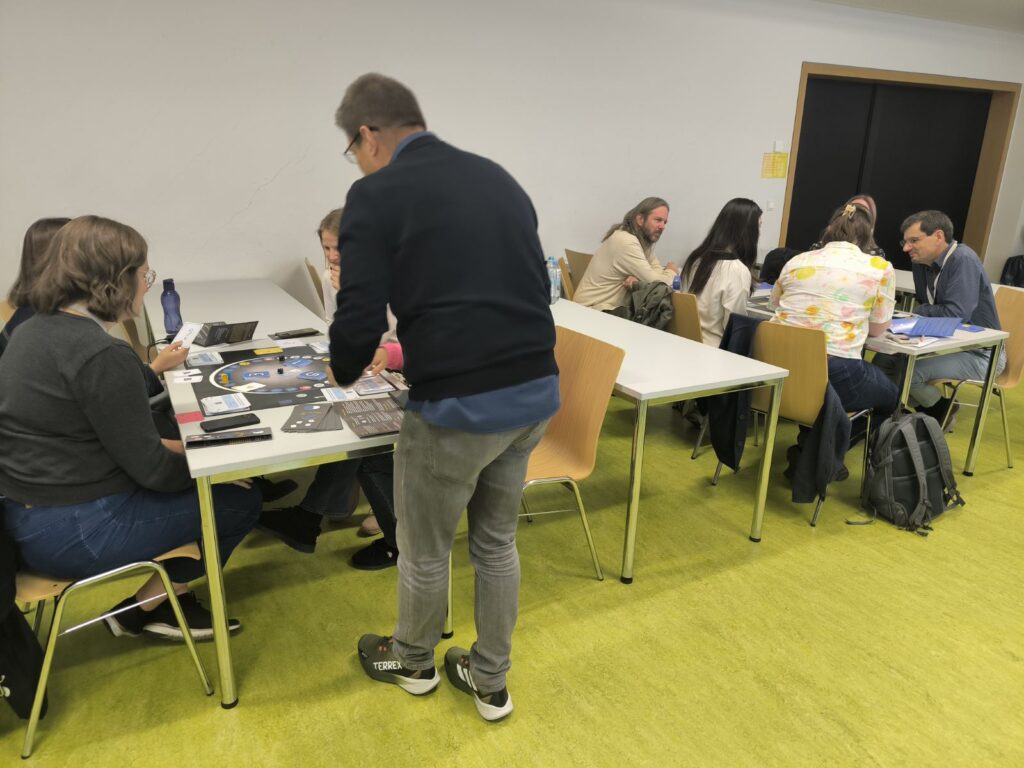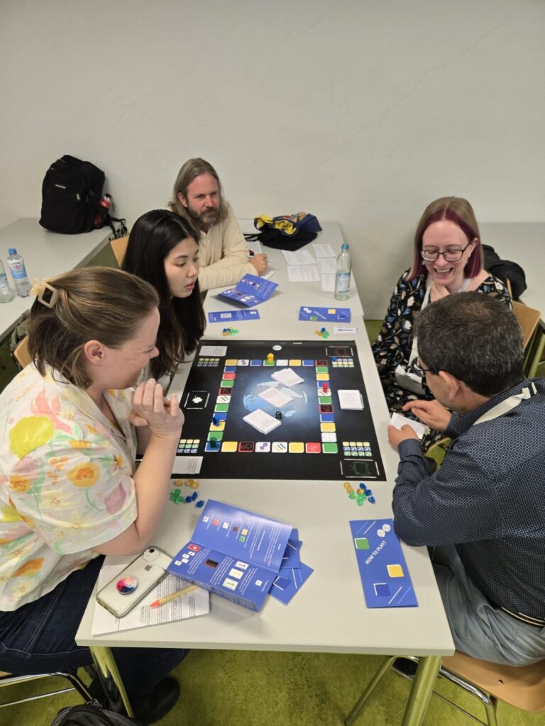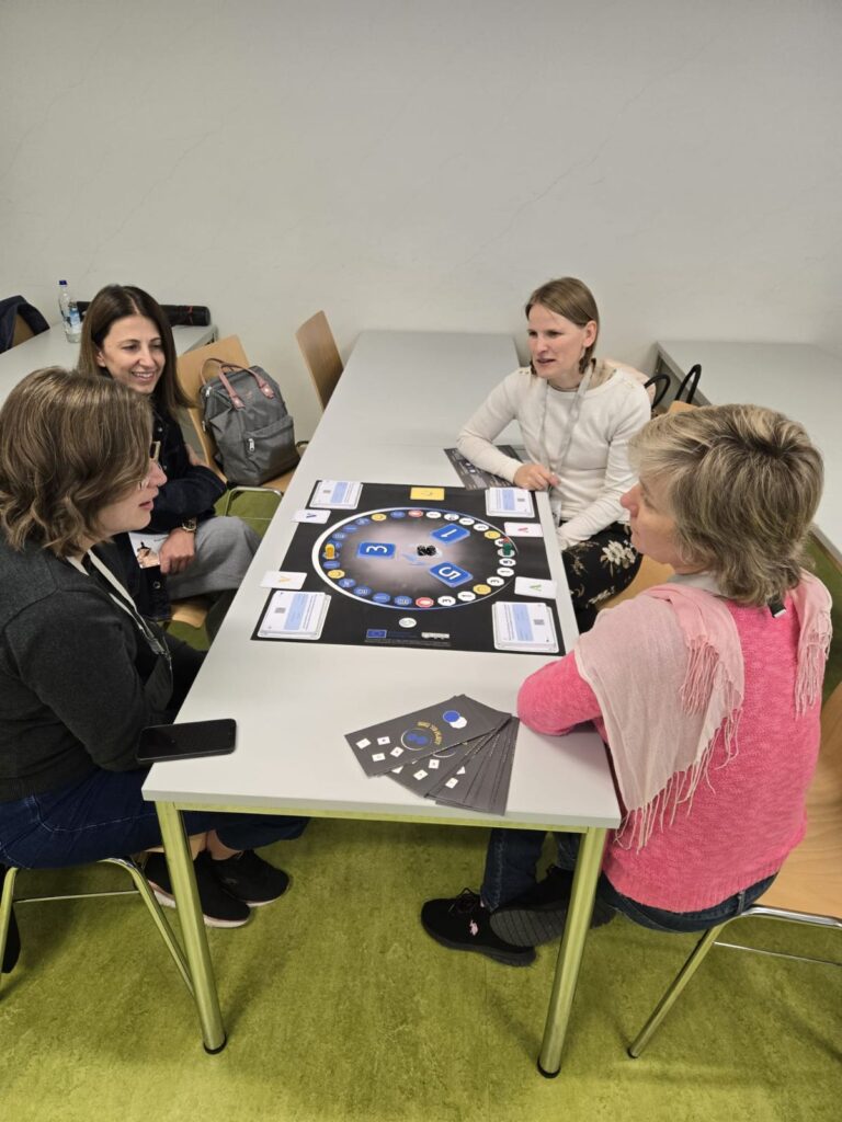 The workshop invited participants to dive into game-based learning by trying out the board games developed within the project. Rolling dice, answering questions, and exchanging reflections, attendees experienced first-hand how play can turn into a powerful educational tool. The session created a lively, collaborative atmosphere and opened space for conversations on how such games could be adapted to classrooms, libraries, and professional training.